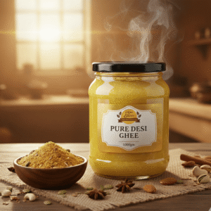 Naturally aromatic desi ghee packed with essential fats and traditional goodness.